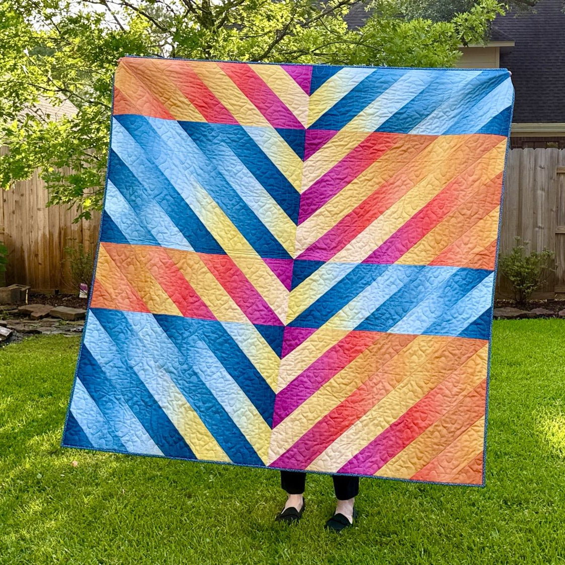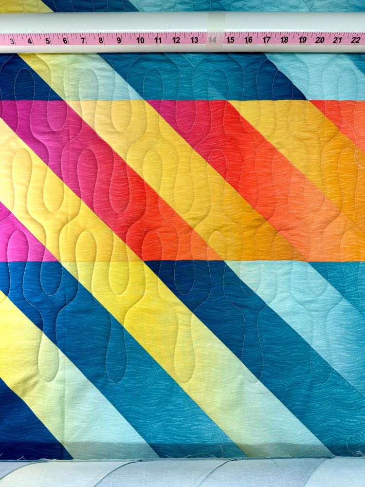 The quilt was machine pieced and quilted on my longarm with a flowing pantograph.